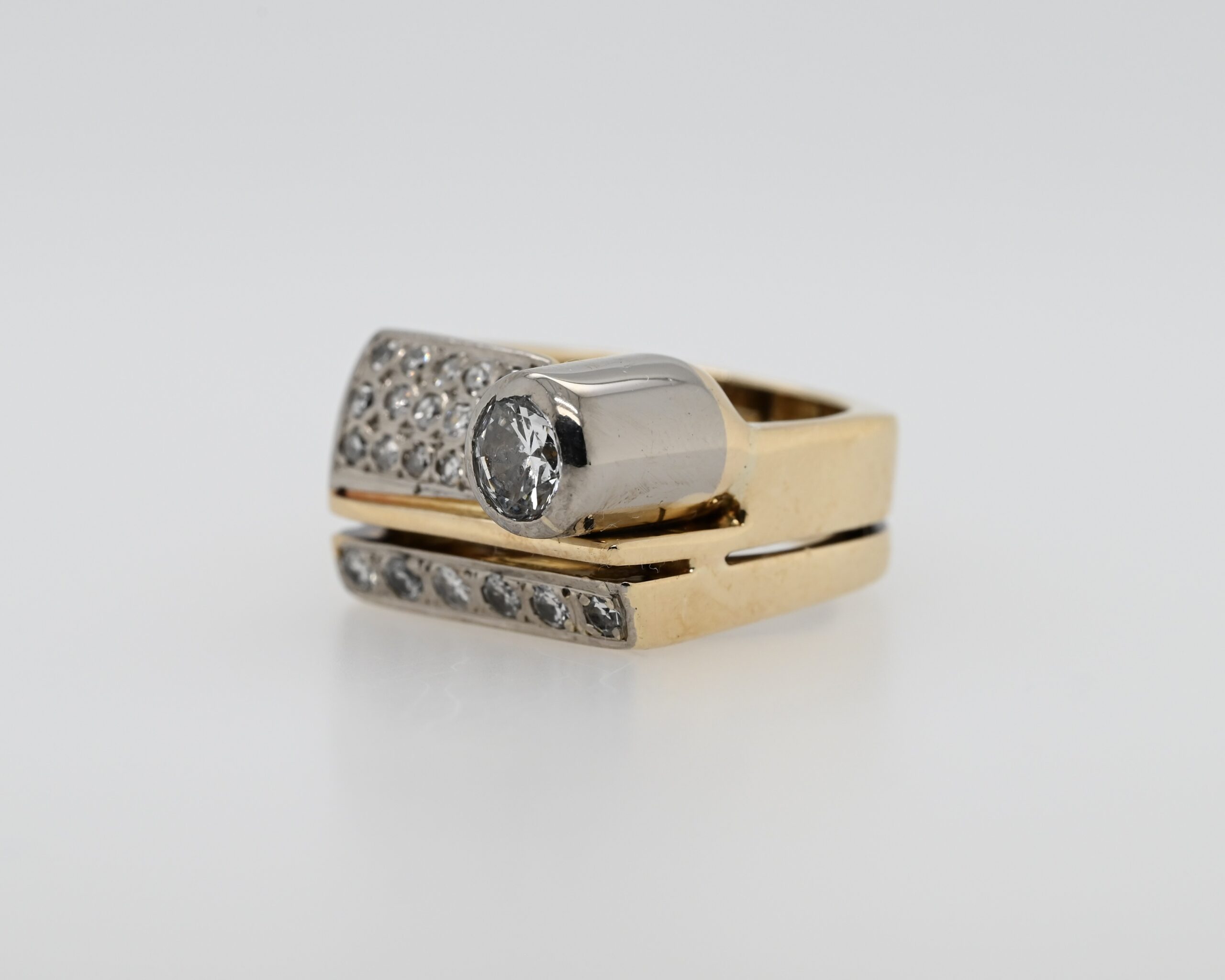 This 14K Custom Made Ring by renowned designer Tom Giannis features a stunning 0.84 Carat Round Diamond with SI-2 Clarity, H-I Colour, and a Good Cut, offering exceptional brilliance. Accentuating the centre diamond are 0.45 Carat TDW Small Diamonds, adding extra sparkle and sophistication to the design.