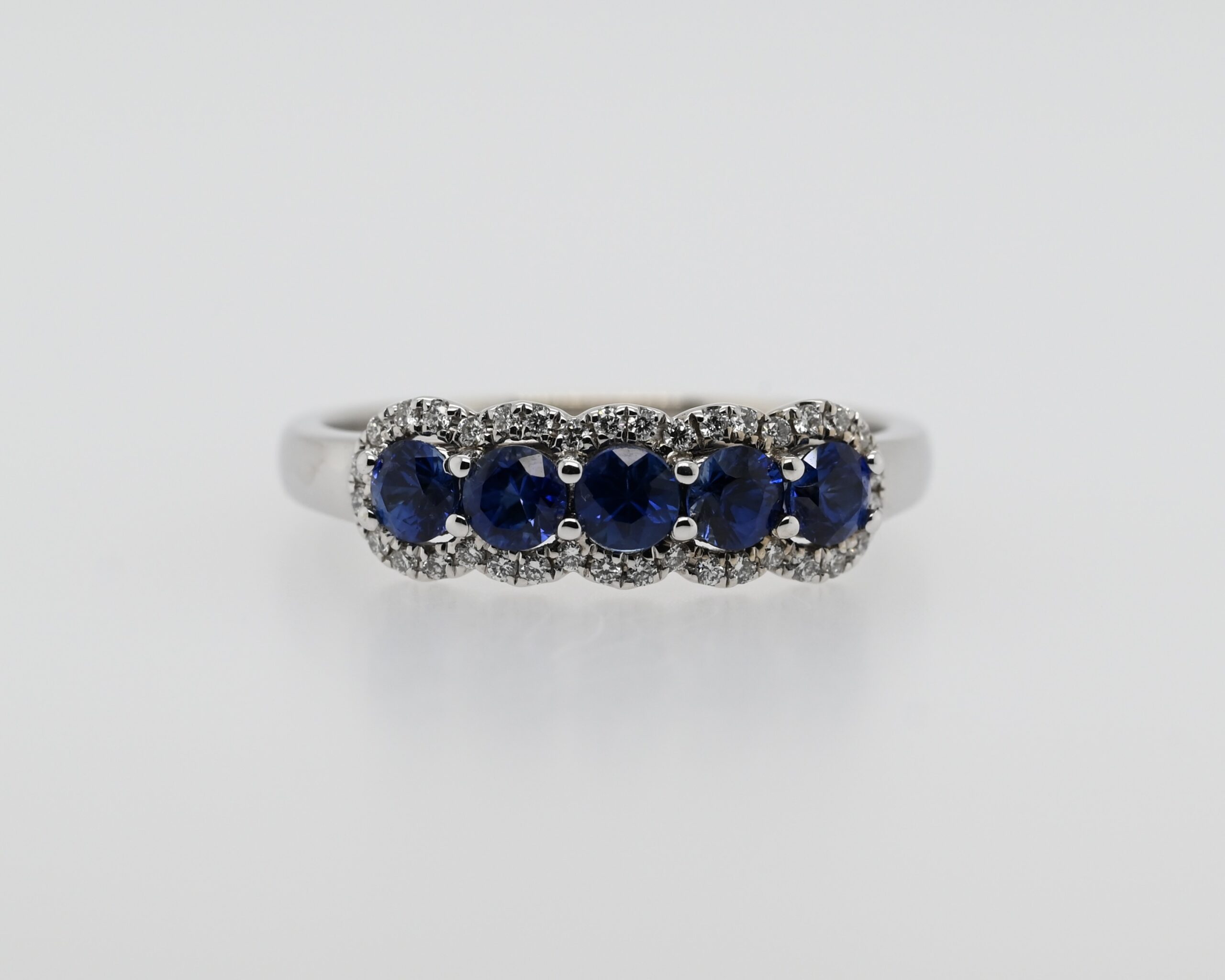 - Centre Stones: Five Round Ceylon Sapphires (0.77 ct. T.W.)