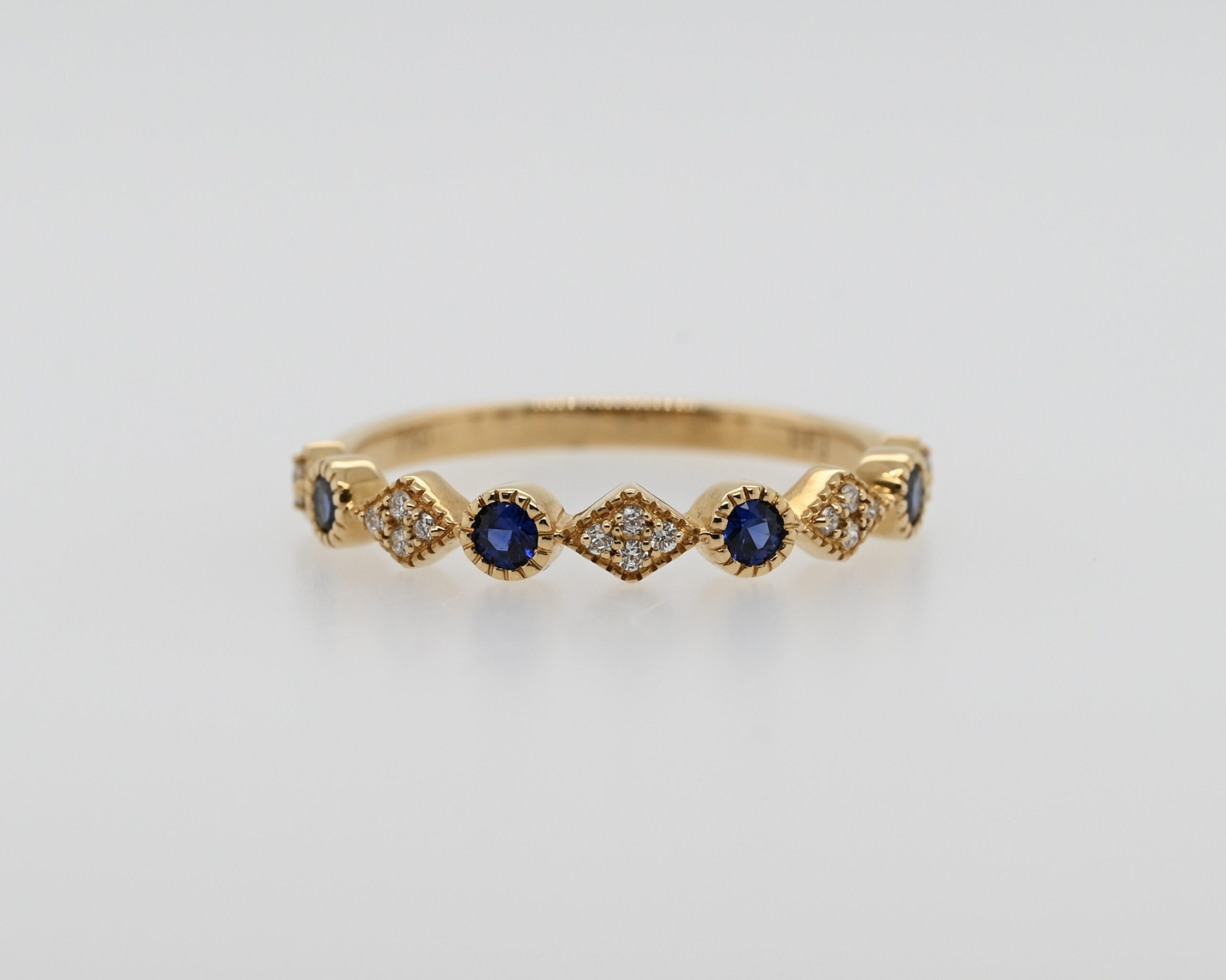 - Stones: 0.23 ct. Total Weight Sapphires, 0.08 ct. Total Weight Diamonds